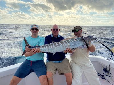 Wahoo are one of Capt. Bruce's favorite fish to catch on our charter fishing trips in the Florida keys. We catch wahoo year round in Islamorada, but the best wahoo fishing for fish over 30# and sometimes up to 70# takes place from November through march (especially around the full moons). Techniques used to catch wahoo include kite fishing or slow trolling large live baits called "speedoes", as well as high speed trolling and vertical jigging. Wahoo are also caught as a by catch of dolphin fishing in the late spring and summer offshore of Islamorada.